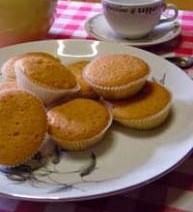 Mini cakes, Meng de bloem en het bakpoeder en roer er het eier-suikermengsel door. Tot slot ook nog de stijfgeklopte eiwitten voorzichtig onder roeren (niet meer kloppen).